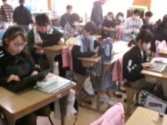 6年生は外国語で聞き取りの問題をしていました。学んだ文は、「This is mY ~ .」でした。