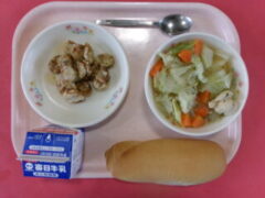 今日の献立は、ごはん 牛乳 くじらにくのたつたあげ いるうのはな みそしる です。