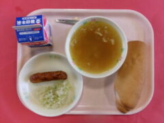 今日の献立は、ホットドッグ 牛乳 オニオンスープです。