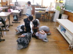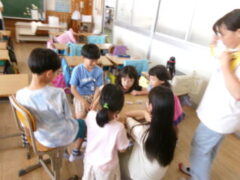 2年生はこの日の図工で、新聞紙でいろいろくふうしてあそびました。テーマは、くしゃくしゃ ひろげて しんぶんであそぼう」でした。2年生が考えたあそびは、やぶいて雪合戦、かぶと、チャンバラ、、まとあて、ボーリング、たからさがしなどたくさん考えて遊びました。とても楽しそうでした。