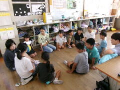 今日の昼休憩は、外の運動場に出ることができました。暑さ指数も28ぐらいでした。3年生以上はみんなそびでおにごっこをしていました。子供の笑い声が運動場に響くのはいいことですね。早く涼しくなってほしいです。