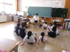 2年生は音楽の「ぷっかりくじら」で、歌に合わせてピアニカを吹くことに取り組んでいました。手の押さえ方を確認しながら頑張っていました。