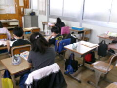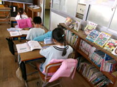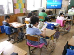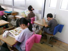 4年生は図書室で本の借り換えをして、教室でとても静かにして本を読んでいました。