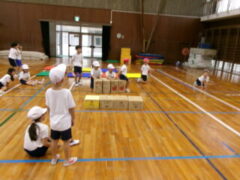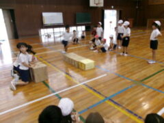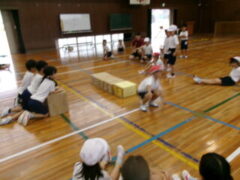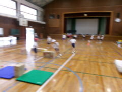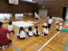 この日、2年生は体育で「とびっこあそび」をしていました。前半は、いろいろな場でいろろなとびっこして、後半は、とびっこあそびを工夫しながら活動しました。最後に、その工夫を発表していました。