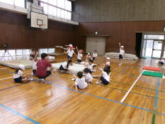 6年生は体育で体つくりの運動で、ゲーム性にある運動に取り組み、とても楽しそうでした。