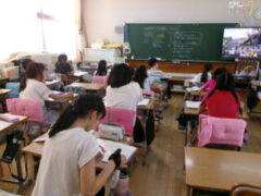 2年生は算素の復習問題に取り組んでいました。できた人は、答え合わせまで端末機を使ったりしながら静かに過ごしていました。