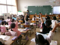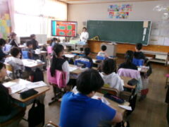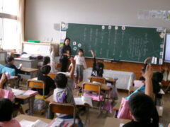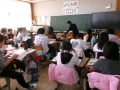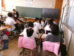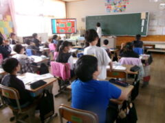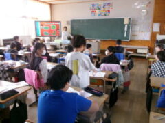 4年生は国語で「1つの花」を学習しています。この時間のめあては、「戦争にいくお父さんの思いを考えよう。」でした・お父さんがゆみこに言った「ゆみ さいご1つだけあげよう。1つの花をだいじにするんだよう・・・・」ところを子供たちは意見を出し合って理解を深めていました。
