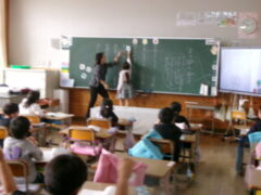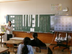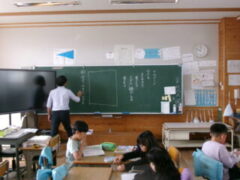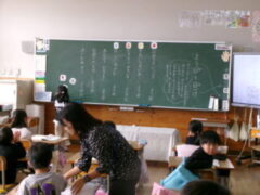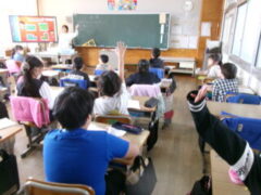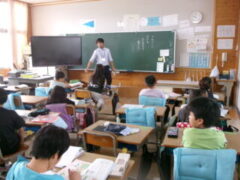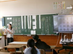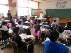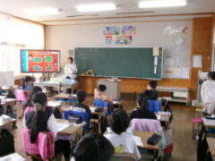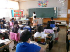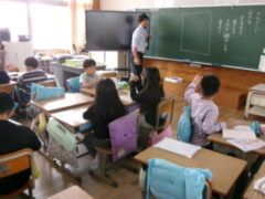 4年生は国語で「1つの花」を学習していました。この時間のめあては、「十年後のゆみ子の生活の様子について考えよう。」でした。みんな友達の意見につなぎながら発表していました。