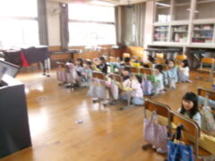 1年生は、今日、午後から学習発表会です。1時間目通しで練習していました。1年生の「がんばるぞう」という意欲がとても伝わってきました。本番が楽しみです。