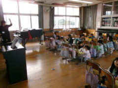 ●後半は、音楽で練習してきた「ジェラシックパーク」をテーマにした曲を合奏していました。やわらくかくやさしい合奏でした。