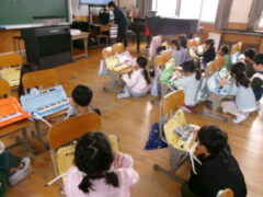 4年生は音楽でリコーダーの練習に取り組んでいました。この練習は、リコーダーのテストのための練習でした。