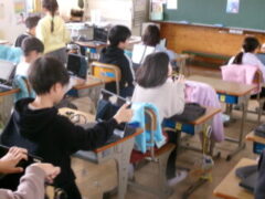 2年生は、春休みに向けて端末機に使い方を確認していました。
