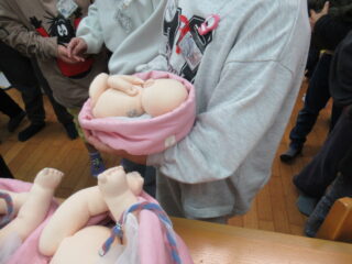 この世に生まれてくるのかを、いろいろな大きさの赤ちゃんの人形を抱いたり、