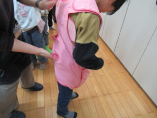 おもりのついたエプロンをかぶって妊婦さん体験をしたりと