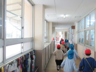 3時間目に間に合うように、こども園の子供たちが有功小学校に来てくれました。