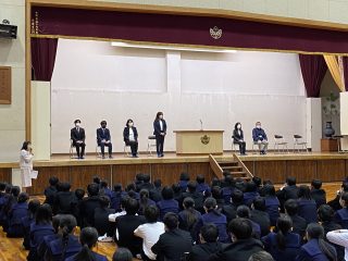 R5年度入学式・始業式・対面式 投稿日:2023年4月13日2023年4月13日 令和5年4月10日に入学式が行われました。 今年度は79名が入学しました。おめでとうございます。 また、翌11日には始業式・対面式が行われ、1学期のスタートを切ることができました。対面式では新入生が2,3年生と顔を合わせました。困ったことがあればどんどん先輩を頼りましょう!