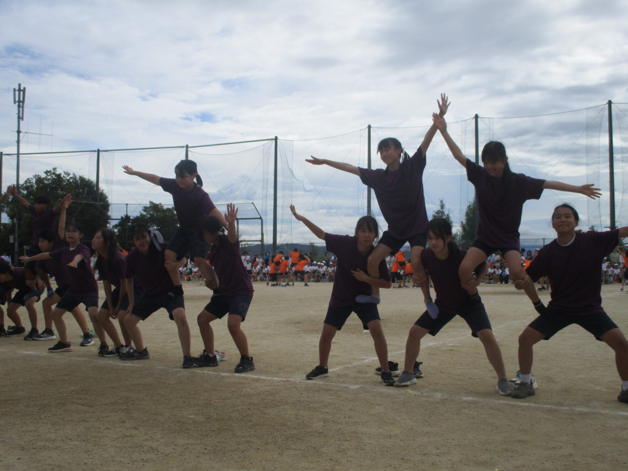 5年生は、騎馬戦、リレーとダイナミックで迫力がある競技を見せてくれました。低・中学年のお手本となるようなリレーでのバトンパスや走りがありました。6年生との表現演技では、友達と協力し作り上げ、見事に成功させることができました。練習時からの努力があってこその演技となりました。
