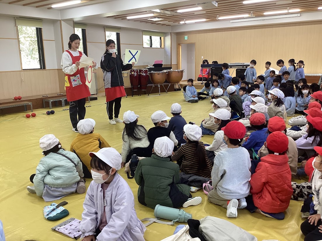 その後も、ピアニカの演奏や手話をつかって歌を聴かせてくれました。○×クイズでは、年長さん達と1年生が一緒になって、クイズに挑戦し、楽しみました