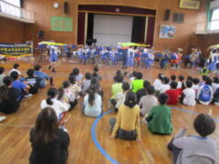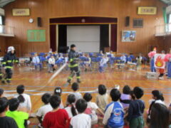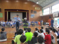 20日(月)3時間目、消防署の方々による吹奏楽コンサートが開かれました。美しい音楽に触れるよさはもちろんですが、このコンサートでは防火のお話や消防隊員さんの訓練のお話などがあり、1時間のコンサートはあっという間でした。演奏はディズニーソングやアニメソングなどで子どもたちは手拍子でノリノリでした。アンコール曲では立ち上がって踊っている子もたくさんいました。防火について劇で説明をしてくれたときには、消火に駆けつけた消防士さんをよく見れば6年生の担任の先生だったり、大盛り上がりでした。とても楽しいコンサートでした。