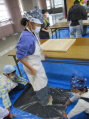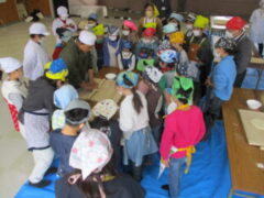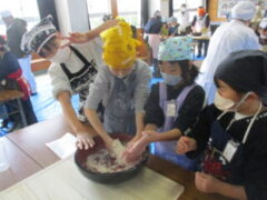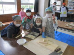 4日(木)、6年生が修学旅行でお留守の中、学校では「麵打ち体験」としてみんなでうどん打ちを体験しました。