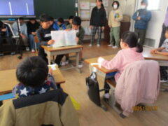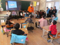 19日(金)5時間目、6年生の外国語の時間に1年生に英語で絵本の「読み聞かせ」をしました。加太小学校はふだんから「たてわり活動」で学年を超えた関わりがあり、1年生にとってはよく知っているお兄さん、姉さんです。6年生にとっても1年生はかわいい”後輩”。6年生は7グループに分かれて7つの本を読みました。読みながら「What’s the time Mr. Wolf?」などとみんなで問いかけるタイミングがある本、「Tooth paste on the head. Yes? or No?」などとクイズのように尋ねられる本、などなど、1年生にとって英語が理解できなくても、みんなで一緒に声を出すことをことを楽しみながら、6年生の気配りで英語を通したコミュニケーションは成立していました。たのしかった、と振り返りを残す1年生と、達成感に満ちた表情の6年生。たくさんの学びを残した45分間でした。