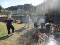 この前日から天気予報では全国的に強い寒波が日本列島を覆う、ということでした。近畿地方も北部で暴風雪警報が出ているところもあるらしく、この日も和歌山でもとても冷たい風が吹いていました。夜の冷え込みも強かったようで、トンボ池の水も凍っていたようでした。朝から目ざとく子どもたちはそれを発見。半分池に落ちそうになりながら氷取り祭りです。見せてもらうと結構な厚さで、5ミリ以上ありました。冷たい!なんて言いながらもうれしそうに氷を空にかざして、寒さなんて気にせずに遊びまわる子どもたちでした。