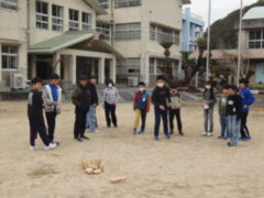 加太小学校では、各学年の子どもたちから6年生へのお礼を伝える機会として一緒に遊ぶことにしています。「6年生を送る遊び」と題して、大休憩を使って5日間、1年生から順番に一緒に遊びました。