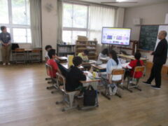 勉強も徐々に軌道に乗ってきたこの日、参観授業を保護者の方々に観てもらいました。どの学級も「子どもたちが生き生きと活動できる授業」を準備する先生方の思いが詰まった、笑顔あふれる授業でした。言葉をたくさん出し合う1年生、レクリエーションを通して仲間をより理解しようとする2・3年生、和歌山の特徴を楽しく話し合う4年生、自分の考えを生き生きと発表し合う5年生、ディベートを通して思考を深める6年生。すっかり新学年としての自覚を感じる風景でした。