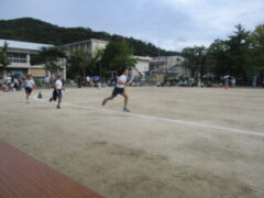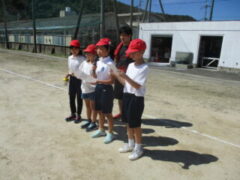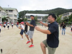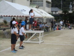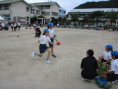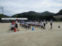まず1・2年生と幼稚園児による種目からスタートでした。この種目は長い長い時間をかけて児童園児たちが「どんな運動がしたいかな」をスタートに考えた種目でした。アイデアを出して、実践して、考え直して、またやってみて・・・。苦労の末に到達した種目でしたので、自分たちを応援する声がとっても元気いっぱいだったことに気づいたでしょうか?すばらしいリレーの姿でした。