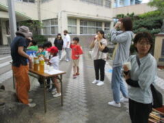 次は体育委員会の児童が考案した綱引きでした。練習では毎回子供同士で対戦していて、この日は初めて保護者の方々が参加します。つまりどんな結果になるか、練習からは予想できないのでした。縦割りグループごとに児童と保護者が一緒に綱を引いて対戦しました。結果は白組が2連勝して優勝!なんと練習からこの日まで、白組は一度も勝ったことがありませんでした。白組の子供たちには、とてもとてもうれしかったと思います。