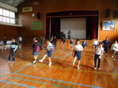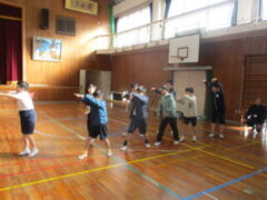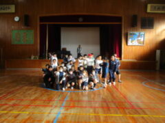 15日5・6時間目、和歌山のダンスチーム「FAVIFUN」の5人によるダンス教室が開かれました。5年生と6年生がヒップホップに挑戦です。体育館に来た子どもたちにいきなり「ナイスー!!」と、ステージで待ち構えるFAVIFUNのお兄さんから声をかけられ、子どもたちは唖然。ところがどんどんダンスを習うにつれて、自分から「ナイスー!」って言えるようになってきた子どもたち。あと2回、毎週木曜午後におこなう教室がこれからも楽しみです。