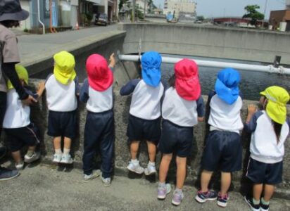 地域の豊かな自然環境を生かし、五感を通した直接体験を多く取り入れています。地域の方のご厚意により、海浜遊び・稚魚放流・魚つかみなどを行っています。