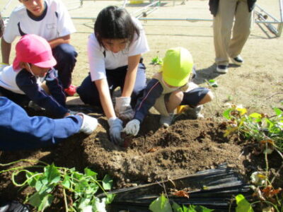 いも掘りが始まると、あちらこちらから「あった!」「大きいで!」と声が上がっていました。