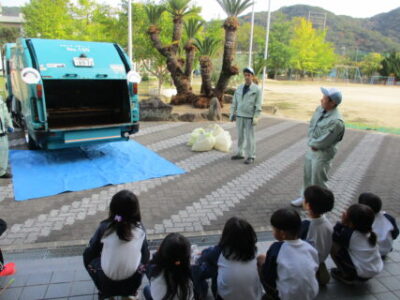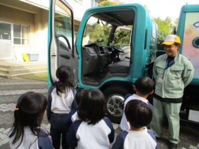 和歌山市環境局の収集センター西事務所の方とパッカーくん(パッカー車)が加太幼稚園に来てくれました。