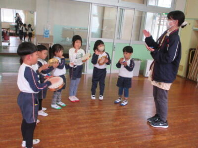 みんなでクリスマスの歌を歌ったり、スズやタンブリン、カスタネットなど、自分の好きな楽器を曲に合わせて演奏したりしました。