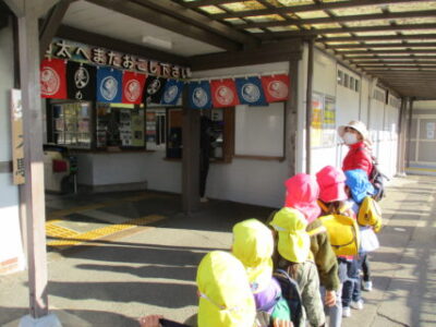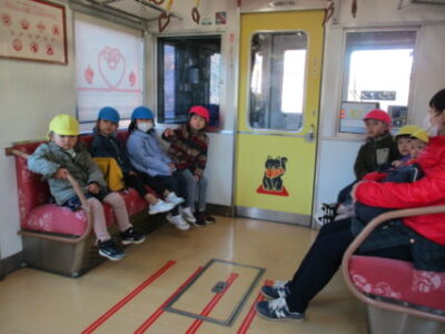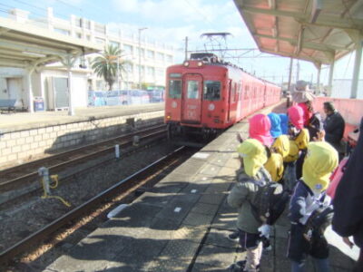 めでたい電車「なな」に、加太駅から二駅目の二里ヶ浜駅まで乗り、西脇幼稚園へ遊びに行ってきました。