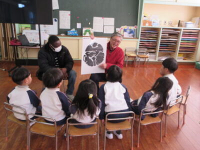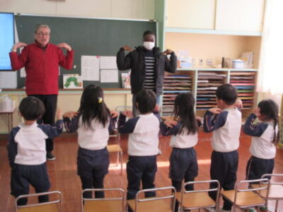 小学校の英語専科の先生が、ALTの先生と一緒に幼稚園に来てくれました。
