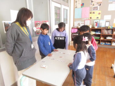 当日、さくら組の2人と担任の先生と3人で小学校あおぞら1組の教室へおじゃましました。