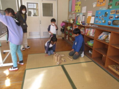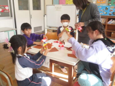 さくら組の子供たちにとっても、普段幼稚園では一番年上のお兄さん・お姉さんとして過ごしていますが、今回の活動のように、小学生に教えてもらったり手伝ってもらったりする経験もとても大切な経験と捉えています。