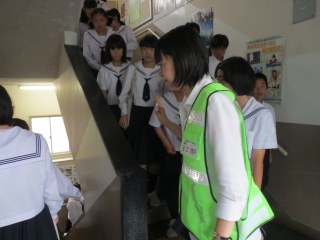 想定通り40分ほどで到着できました。県警の方からは防災避難訓練についてのお話を伺いました。「避難訓練は大切です。継続して行うようにして下さい。本当に震災が起こったときには周りには大人の人がいないかも知れないが、一人一人考えて行動できるようになって下さい。」