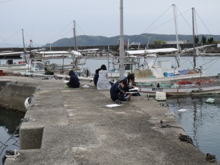 4月18日写生会 投稿日:2016年5月6日2017年8月29日 午後から全校生徒の写生会です 天候に恵まれず、朝から小雨が降っていましたが、 元気に、漁港での写生会です。 みんなそれぞれの場所にわかれての写生会です。