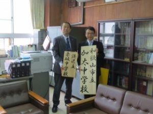 2月22日(水)に堅田前校長が赤坂中学校を訪問。