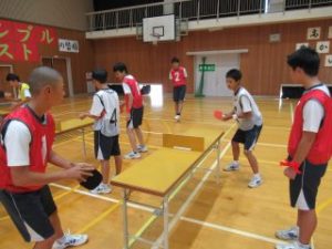 体育館で、抽選により個々のブロック(チーム)を決め、先生チームを含む6チームで熱戦を繰り広げた。