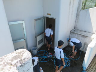16日(金)、5,6限目にプール清掃を行いました。