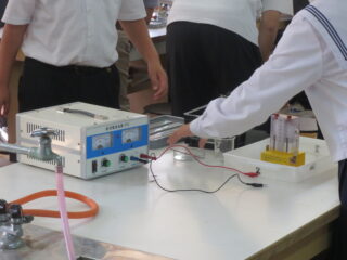 本日、6日(木)1限目 2年生の理科の授業で実験をしました。
