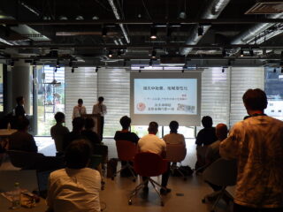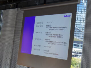 会場は「グラングリーン大阪 北館 JAM BASE」内に開設したオープンイノベーションのための施設であるBloomingCampコネクトエリアです。この施設のコンセプトは、「『やりたいこと』を『できる』に変える」だそうです。様々な人々が集まり、アイデアの交換やプロジェクトの推進、イベントなどを通じて、挑戦を応援し、共創を促す・・・カッコイイ。