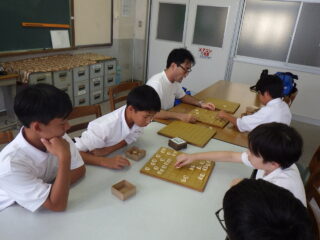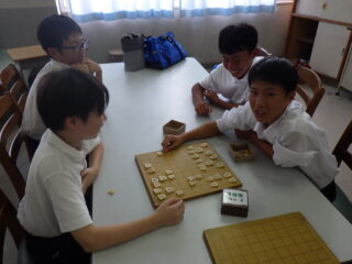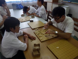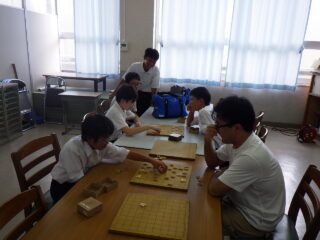 本校の将棋部は、週一回火曜日に行われています。活動中は笑い声が絶えません。先生も真剣に勝負に挑んでいます。油断すると負けそうです。