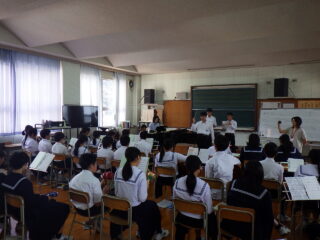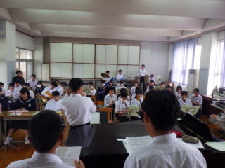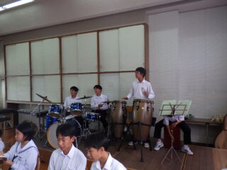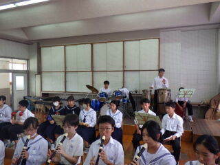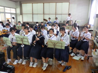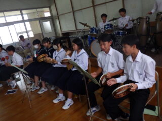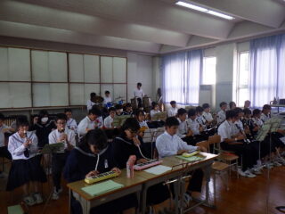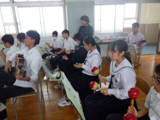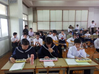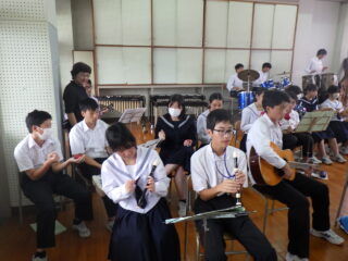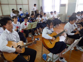 島人の宝 合奏練習 投稿日:2025年10月21日2025年10月21日 11月の学習発表会で披露する音楽合奏の全学年合同練習がありました 楽器はピアノ、リコーダー、鍵盤ハーモニカ、ギター、カスタネット、タンバリン、ドラムなど様々。ボーカル2名(2年生男子1名、3年生男子1名)が加わって、総勢40人を超える構成で、演奏も迫力満点です。 Beginの哀愁ある「島人の宝」とは趣の違う、とてもパワフルな加太中学校版「島人の宝」になりそうな予感です。今後も本番にむけて練習を重ねていきます。