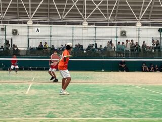 この大会に本校から出場するのは、1年生男子1名だったため、他校の生徒と急遽ペアを組み、一緒に練習を積み重ねることができない中普段から一生懸命この大会に向け努力してきました。結果は惜しくも敗退してしまいましたが、毎日コツコツと練習に励んだ成果が見えた試合だったと思います。同じ1年生同士の対戦を終え、新たな課題が見つかったと思います。今後も努力を続けて欲しいと思います。会場に来ていただいた地域の皆様、保護者の皆様、応援ありがとうございました。