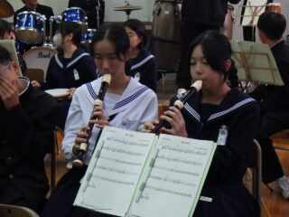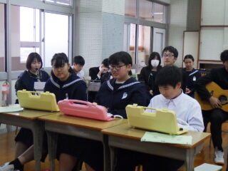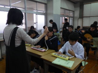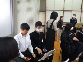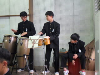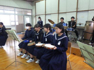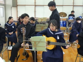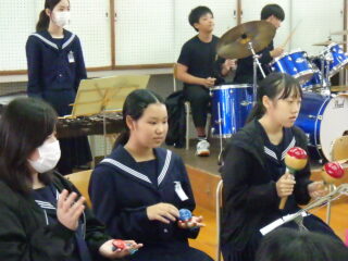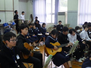 島人の宝 合奏 いい感じになってきました 投稿日:2025年10月31日2025年10月31日 学習発表会にむけての合奏練習が佳境に入ってきました 「いや~さ~さ~」の掛け声も元気いっぱいです。楽器🎹🥁に向かっている生徒たちの表情が生き生きしています タンバリン部隊、鍵盤ハーモニカ部隊、ギター、打楽器等々に交じってボーカルの声にも勢いを感じました